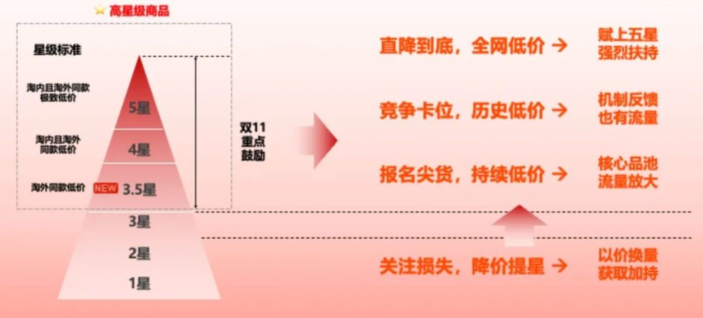 面对商家群体,低价也成了必要条件。去年3月,“五星价格力”机制上线,根据商家的价格力评分,淘宝会对商品实施不同的搜索流量推荐,接近或达到“全网低价”的商品能够获得额外的曝光奖励。