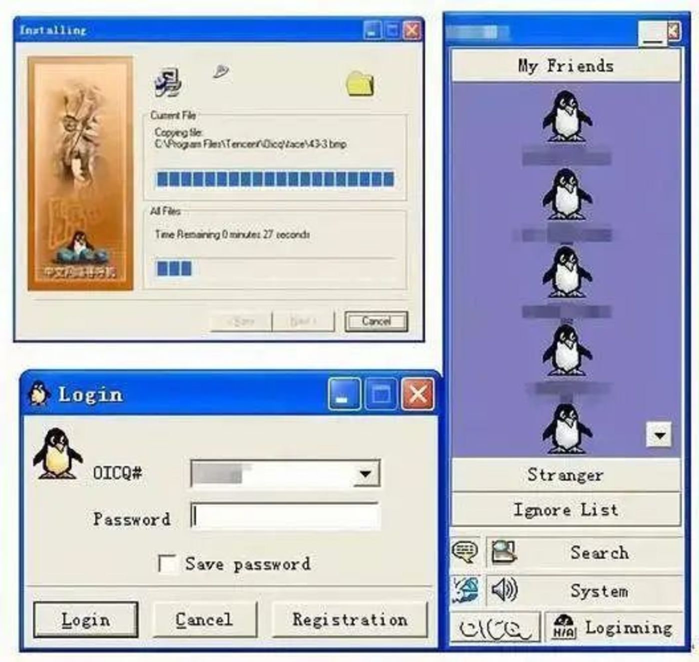 只是在1999年用一款仿制全球风行的ICQ,最初也是传呼机图标的OICQ,后来变成企鹅图标并更名QQ,结果拿下了即时聊天绝大部分份额,和网民登录网络,进入的第一个网站概念,并不太搭。