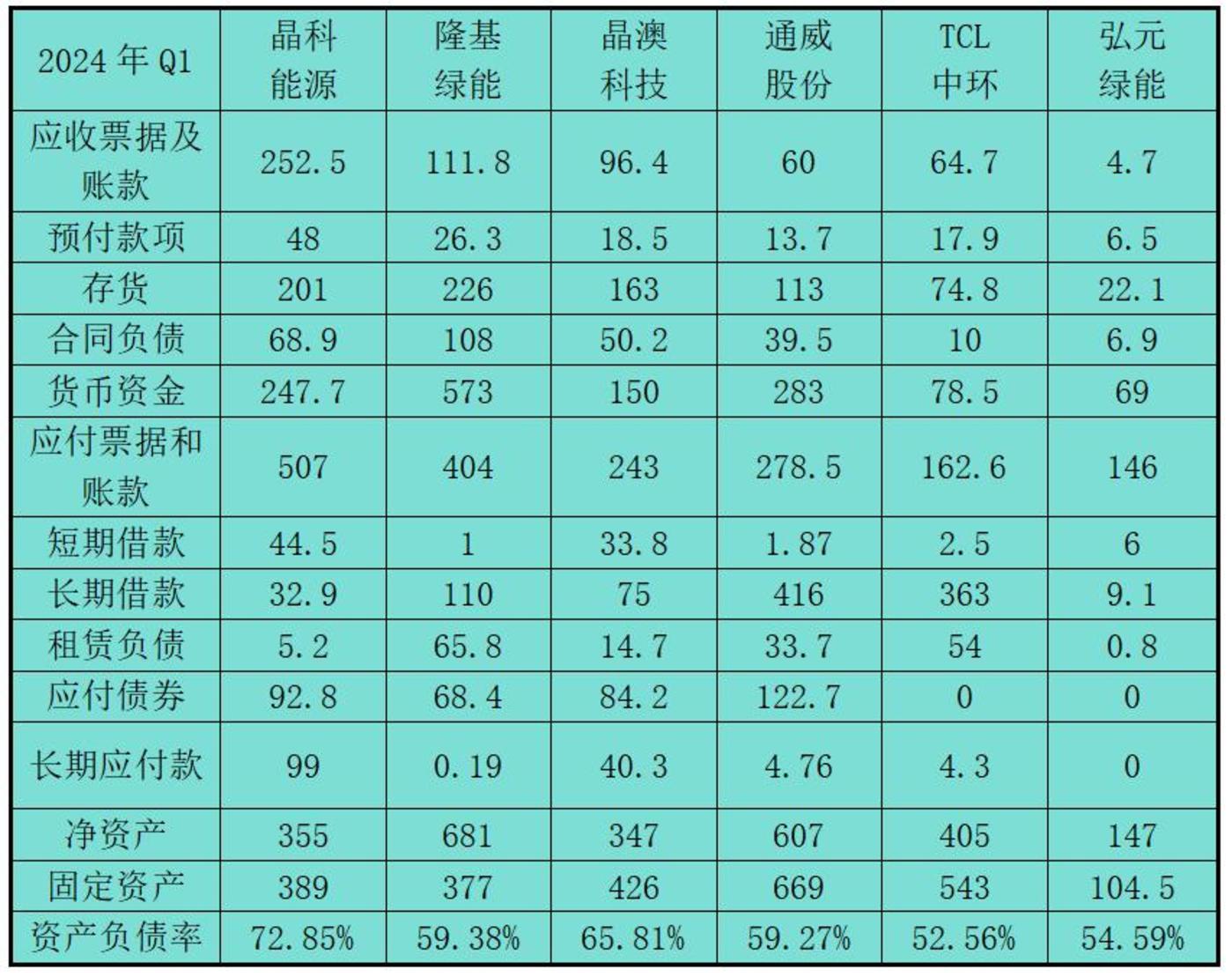 且看光伏龙头企业外加一二三线具有代表性的一体化企业资产负债表: