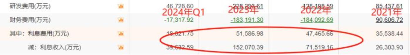 隆基绿能历年财务费用: