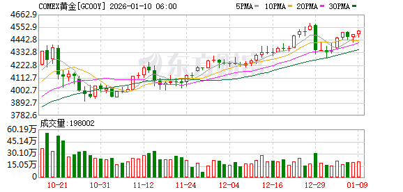1月9日,黄金价格再续涨势,COMEX黄金期货涨1.29%,报4518.4美元/盎司,本周累涨4.34%。