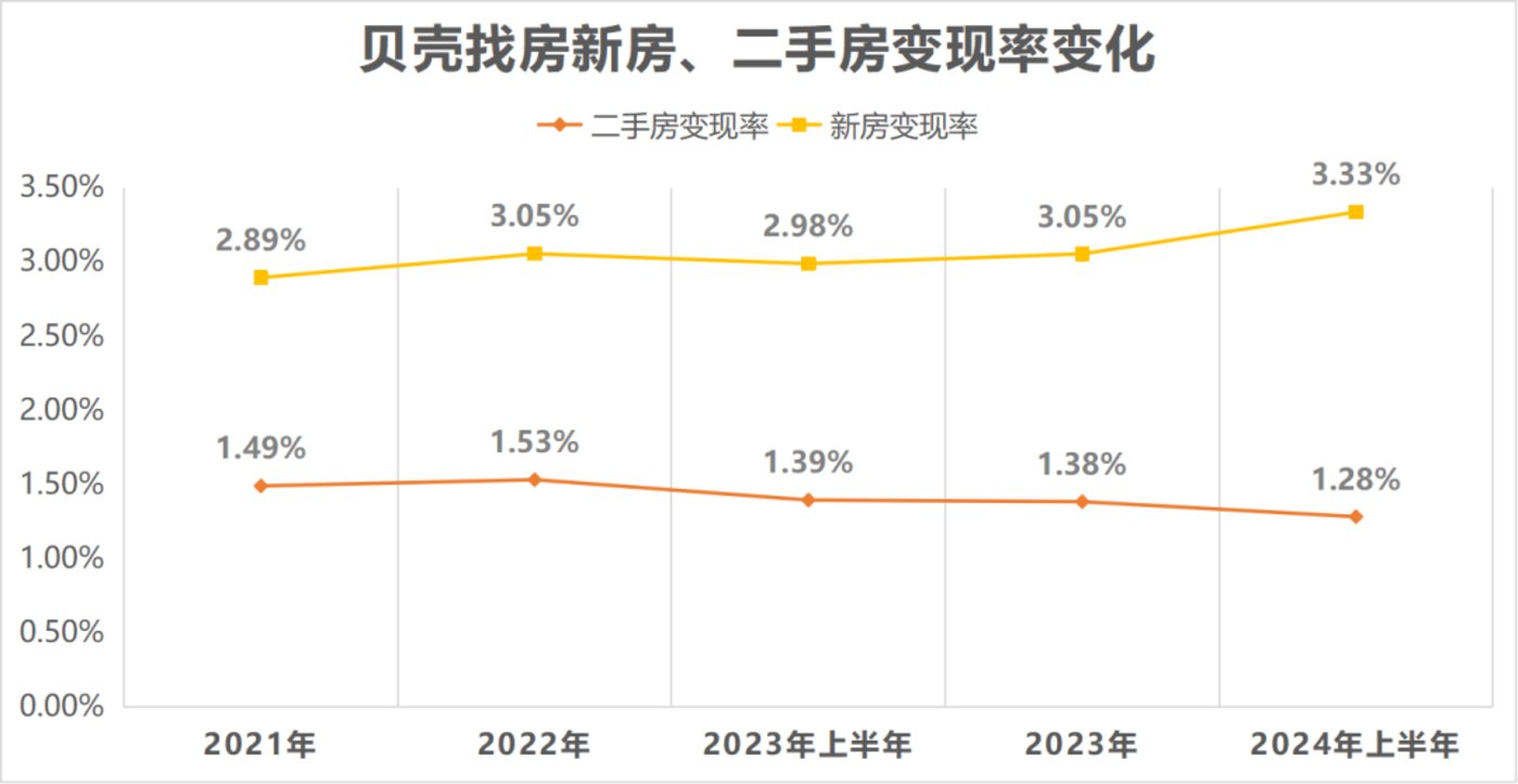 所以,房子真的更加不好卖了。贝壳找房的整体变现能力进一步下滑,今年上半年为1.84%,相比2023年末下降了0.09个百分点。
