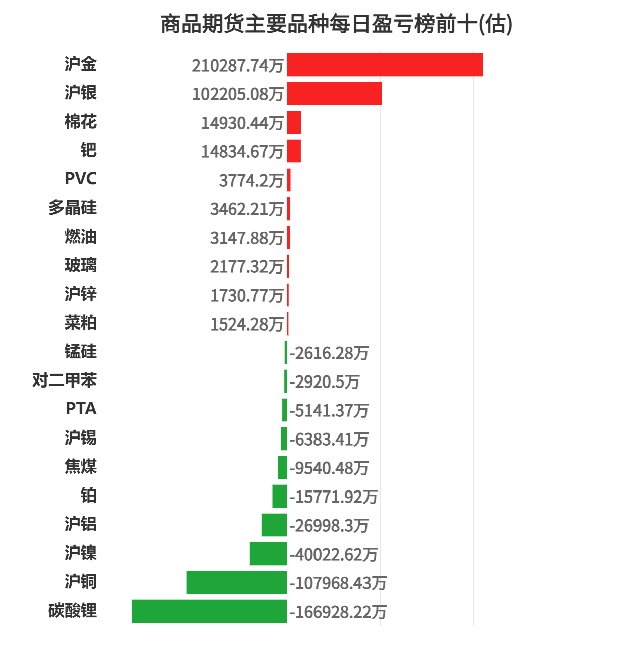 今日商品期货上榜机构席位中沪金盈利第一,为210287.74万元。