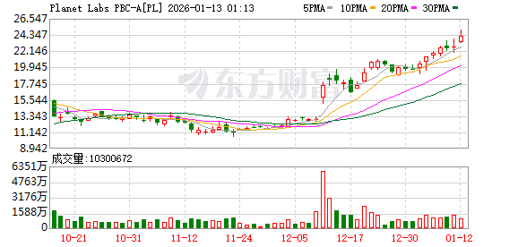 截至发稿,Planet Labs周一开盘后一度涨超9%。公司在2025年录得惊人的388%涨幅后,2026年开年没几天又累计上涨超20%。