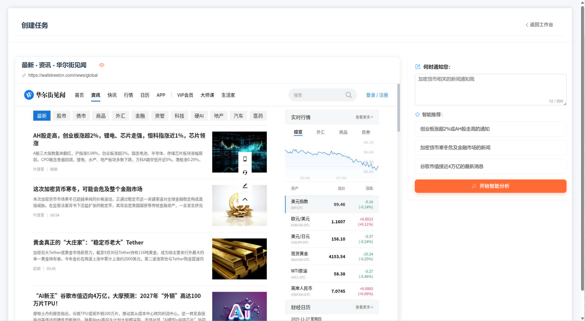 - 自动分析:AI 自动分析并监控页面,不需要写代码、不用配 RPA 脚本、不需要 RSS 支持