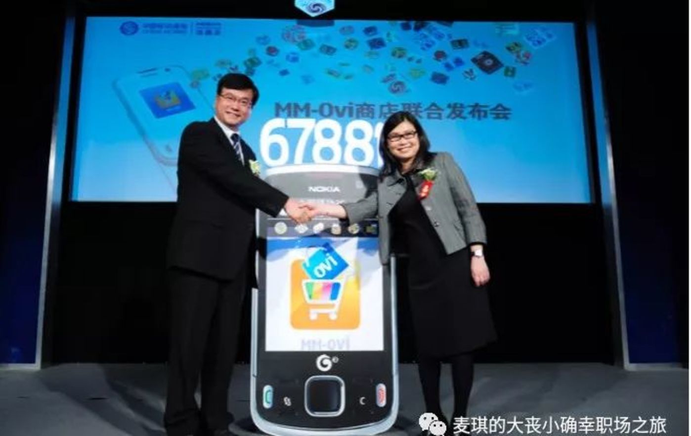 (MM-OVI 应用商店发布Chris和时任中国移动总裁李跃揭幕。2010)