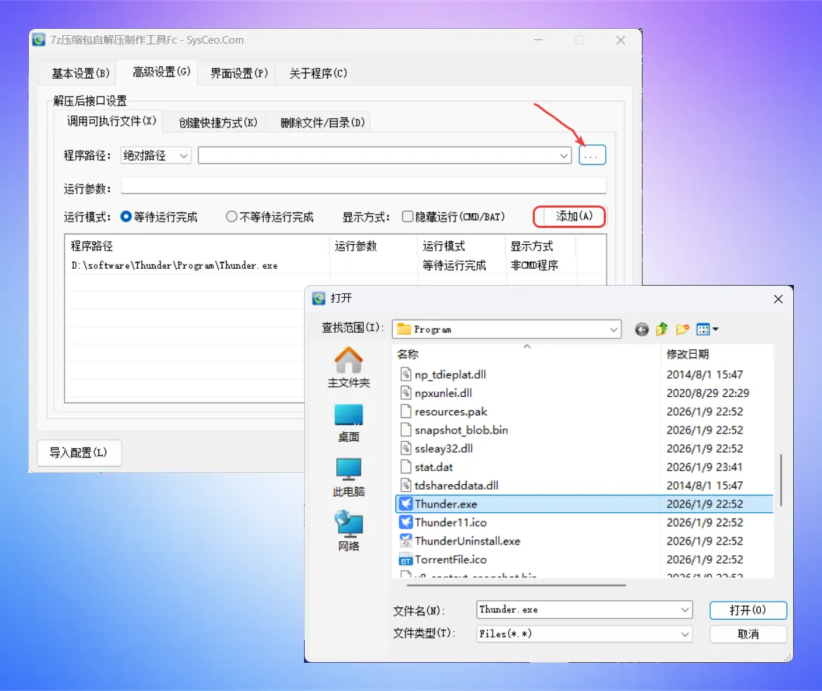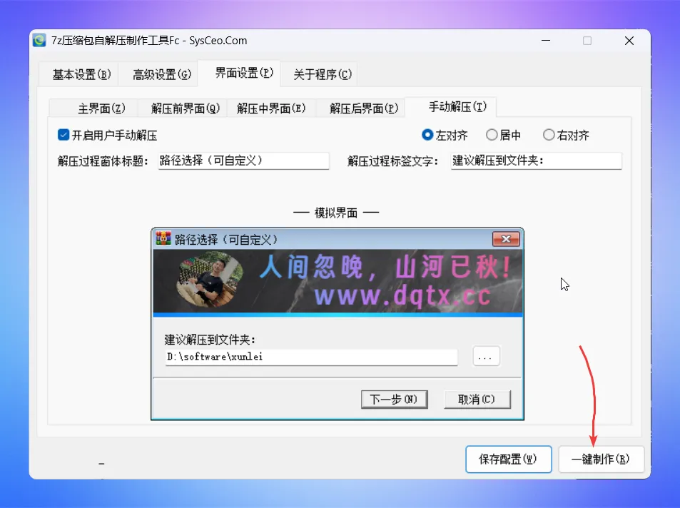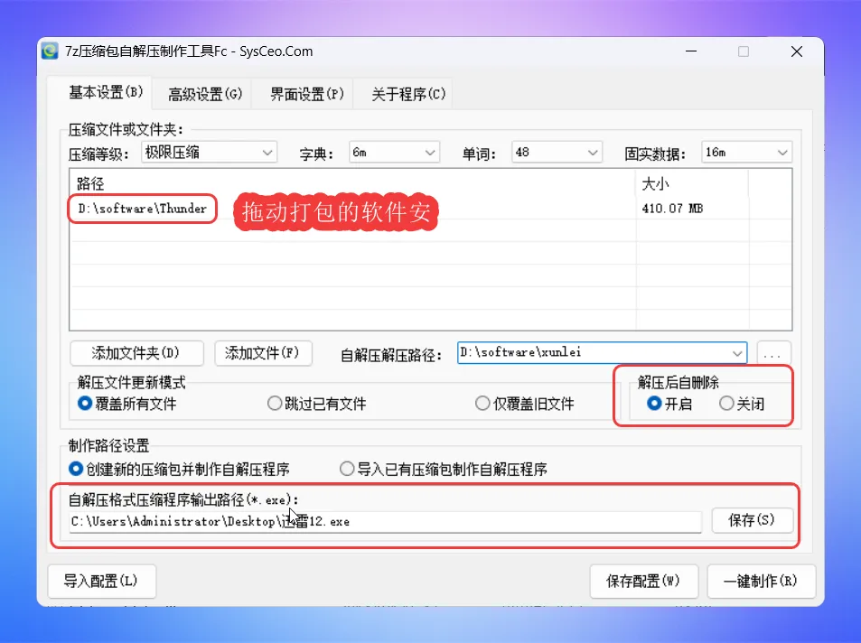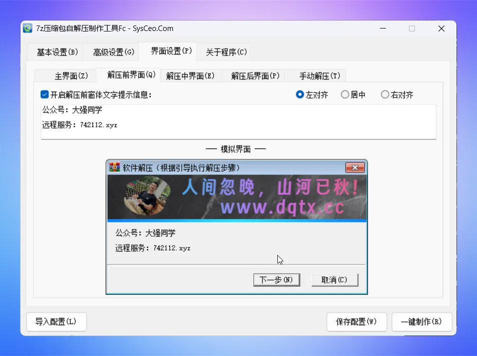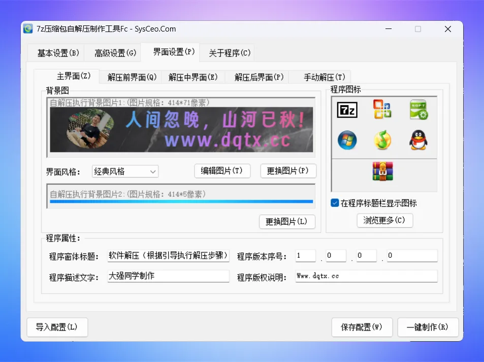 建议把所有的界面设置好,点击保存配置,后续制作自解压文件时,第一时间在基本设置里导入配置