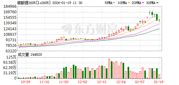 价格的飙升势头在1月14日后戛然而止,并出现戏剧性反转。随着当周新能源汽车零售销量同比及环比下滑的数据公布,市场对短期下游需求的乐观预期迅速降温。1月16日,LC2605合约价格大幅回调至14.62万元/吨,单日大跌8.99%并以跌停报收,相较此轮高点回落幅度超过16%。
