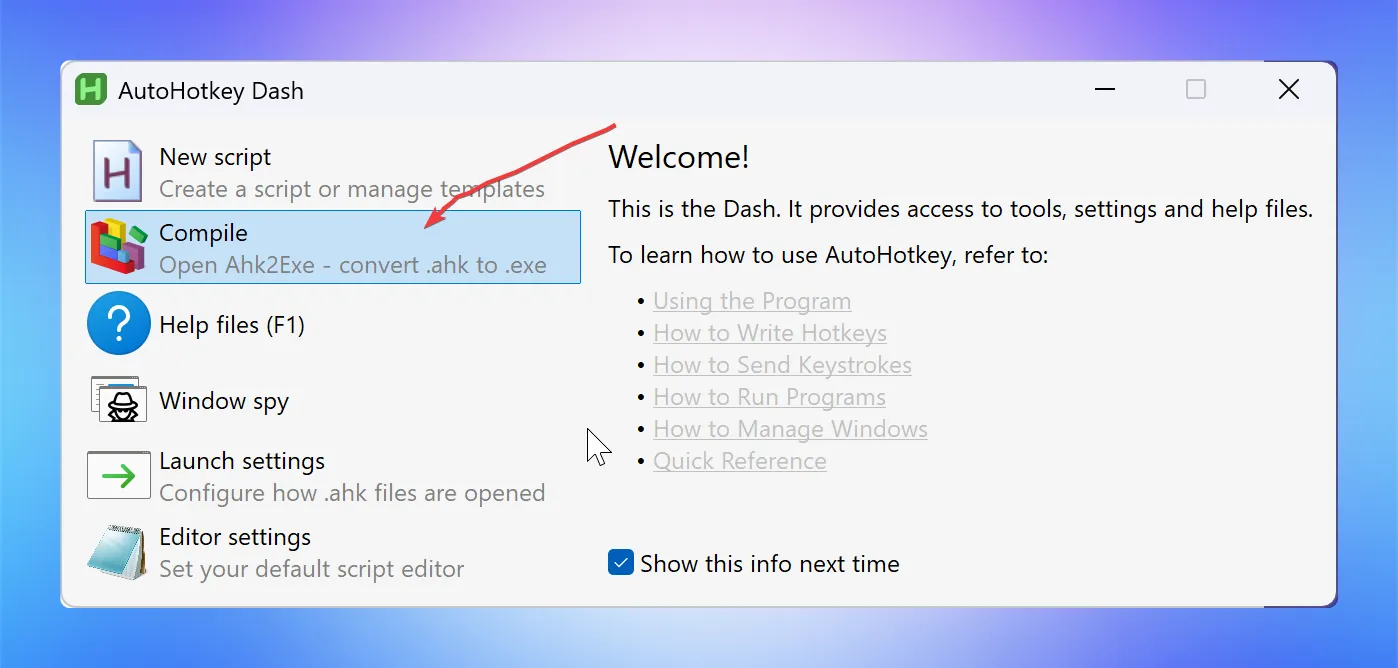 找到并选择 “Compile Open Ahk2Exe – conversion .ahk to .exe” 选项(如(图 2)所示)