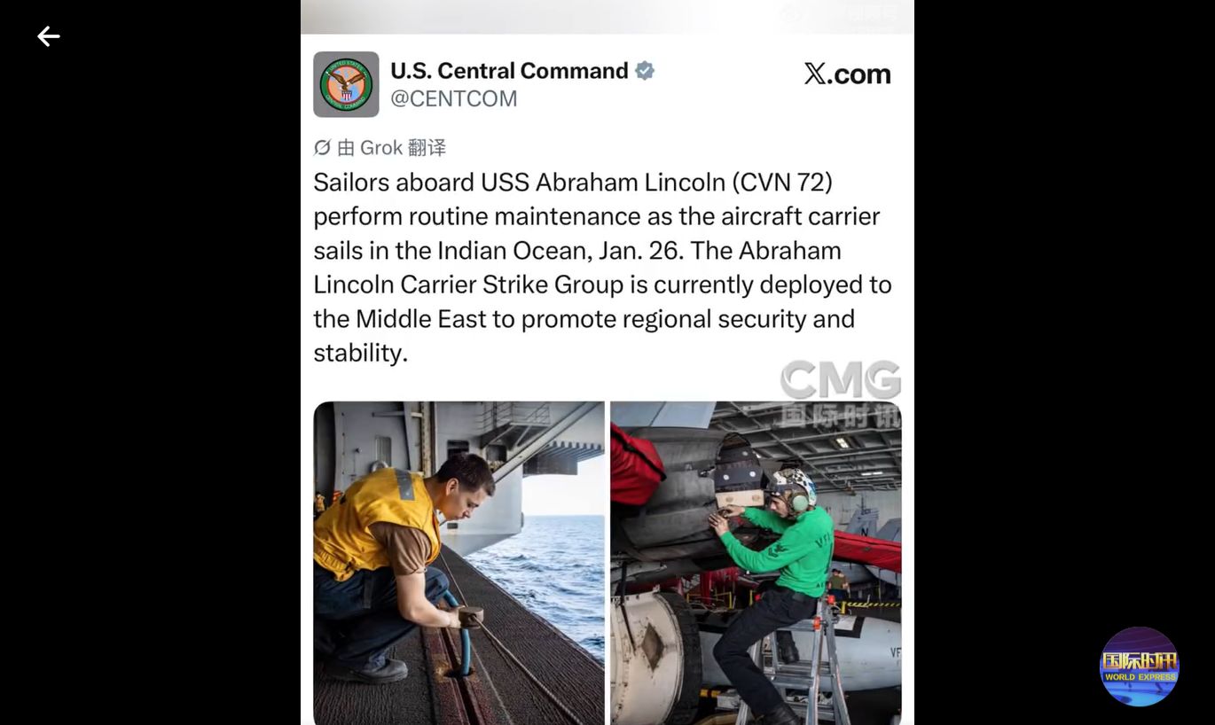 据央视新闻,负责中东地区美军行动的美军中央司令部26日在社交媒体发布消息称,美国海军“亚伯拉罕·林肯”号航空母舰打击群“正部署到中东”。