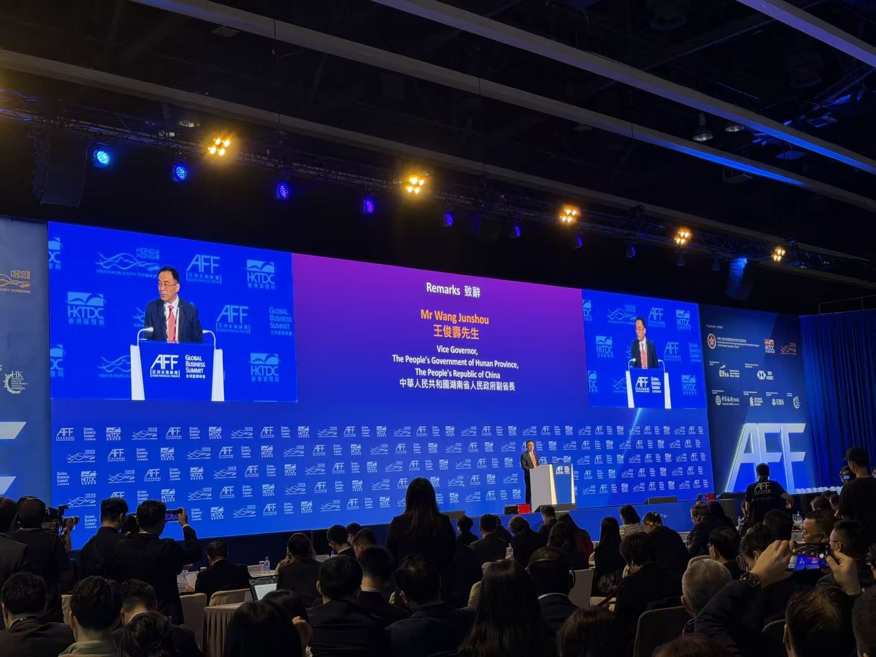 “去年已有4家湖南企业在港交所敲锣,企业上市的‘港风’正在吹遍三湘大地。让我们携手实现经贸合作双向赋能,进一步巩固企业双向交流桥梁,支持湖南借助香港平台 ‘借船出海’,吸引香港优质企业在湖南设立区域总部和研发中心,打造产业融合发展新高度。”王俊寿说。