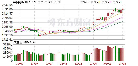存储芯片1月27日早盘相对强势,东芯股份(20%)、康强电子涨停;普冉股份大涨超10%;恒烁股份、协创数据等涨幅靠前。