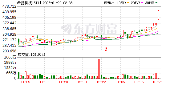 美股“存储四巨头”中的希捷科技周三开盘后拉涨超16%,再创历史新高。公司在昨日盘后交出亮眼财报和表态“今年产能已售罄”后,引来一众分析师集体上调目标价。