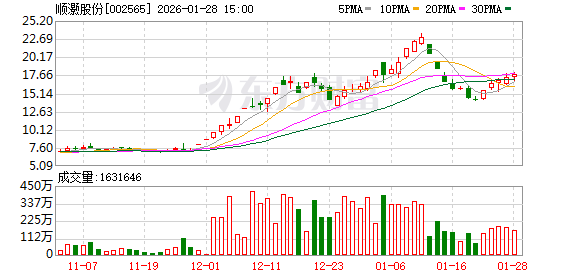 二级市场方面,顺灏股份今日尾盘拉升收涨2.65%,近5个交易日涨幅为26.03%。