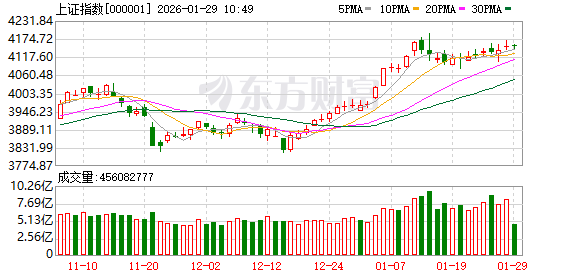 1月28日,A股三大指数涨跌不一,截至收盘,沪指涨0.27%,收报4151.24点;深证成指涨0.09%,收报14342.89点;创业板指跌0.57%,收报3323.56点。沪深京三市成交额达到29926亿元,较昨日放量709亿元。