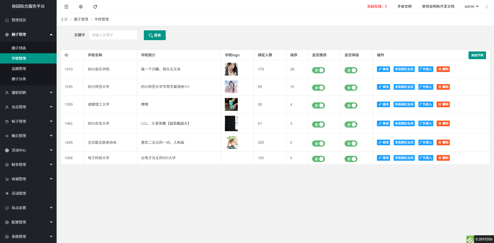 一、大学校园圈子:支持多学校切换,每个学校有独立的首页和切换,搭载其他分区圈子。