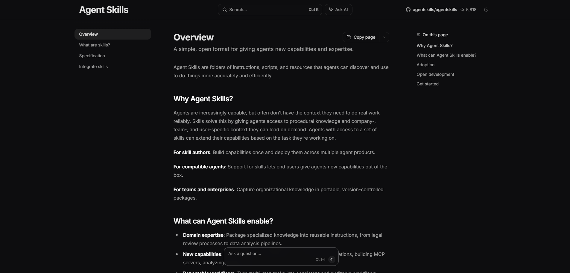 比文档好用,AI 会在写代码时主动提醒你。这些技能遵循 Agent Skills 标准,是开放格式。