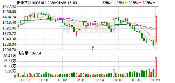 据大智慧VIP,截至1月28日收盘,贵州茅台报1323.69元/股,跌1.44%;今年以来累计跌3.88%。