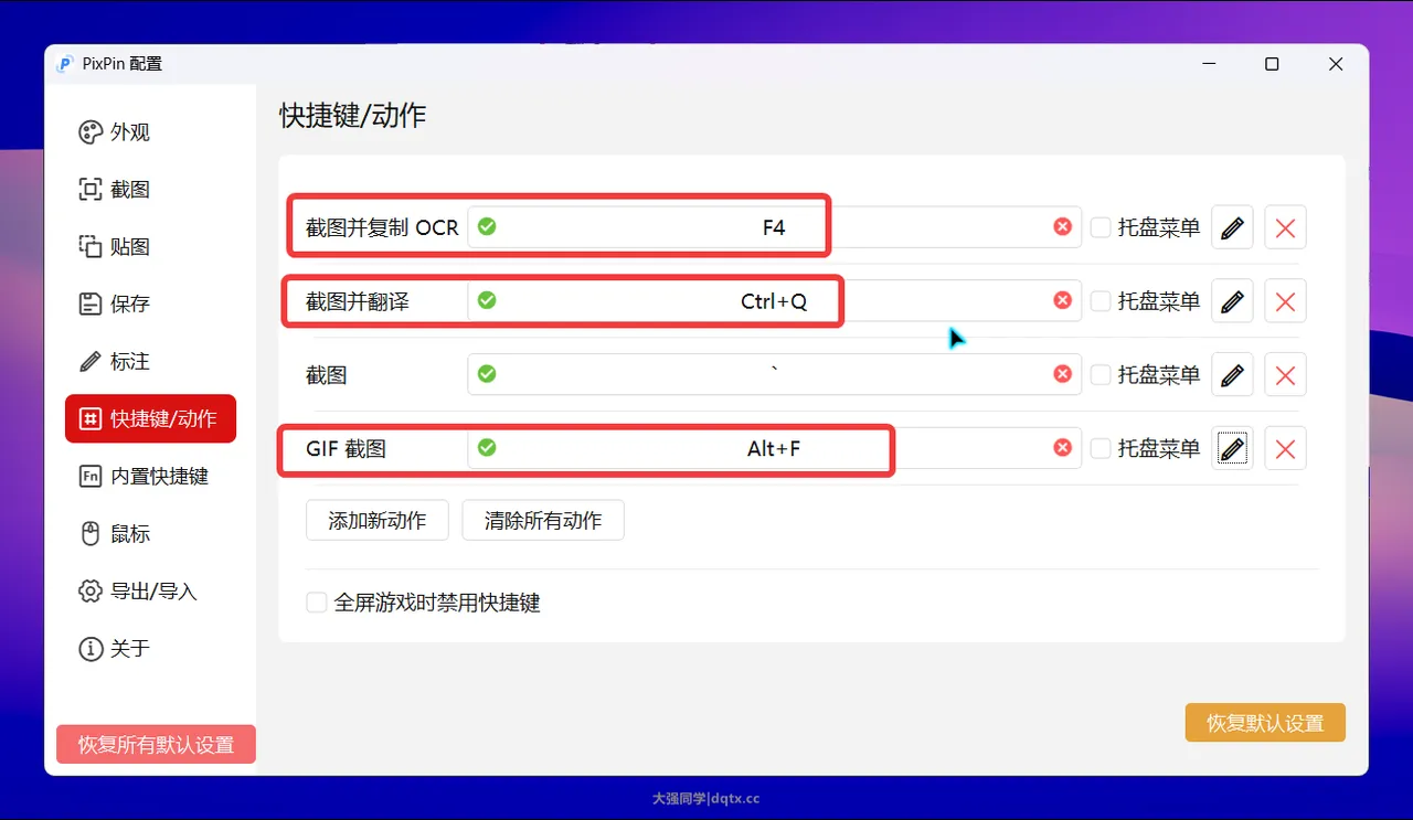 使用 PixPin 有段时间了,集截图、长截图、贴图、标注、OCR 识别、屏幕录制等功能都有,但是我发现这个软件的快捷键/动作才是王炸,比如我自己配置的 ,截图并复制 OCR,截图并翻译,下面看下教程!