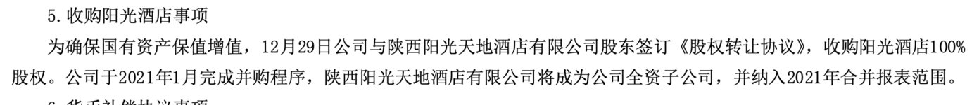 西安旅游称,“由于收购阳光天地酒店股权交易金额未达到董事会审议和披露标准,公司未予披露。”