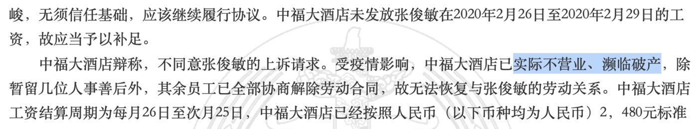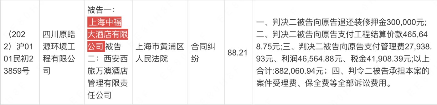 相关司法文书显示,“中福大酒店”原本是一家普通商务酒店,其自称新冠期间一度“已实际不营业、濒临破产”。