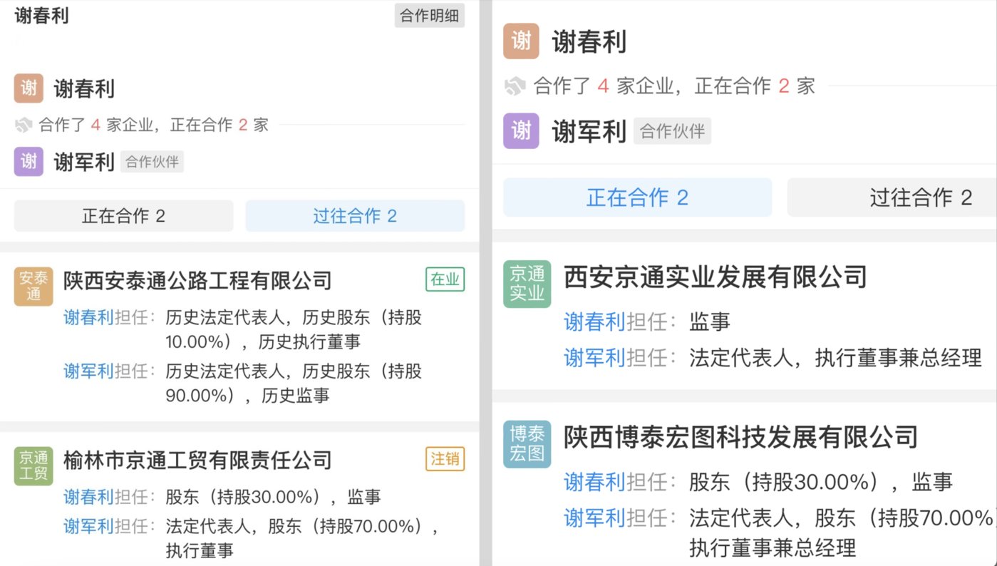 工商信息显示,“陕西阳光天地酒店有限公司”起初股东仅有一人,2020年11月11日,新增持股比例99.9%的新股东——上海岱祁企业管理中心(有限合伙),后者成立于2020年10月21日,股东之一“谢春利”与陕西阳光天地原股东“谢军利”先后在多家企业共同担任股东。