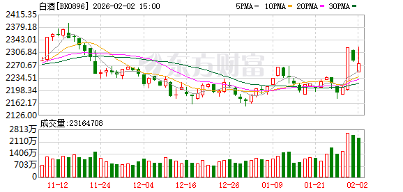 白酒股2月2日早盘再度走强,皇台酒业涨停,水井坊、金徽酒涨超5%。龙头白酒中,五粮液、贵州茅台、山西汾酒涨超2%,泸州老窖、洋河股份涨超1%。