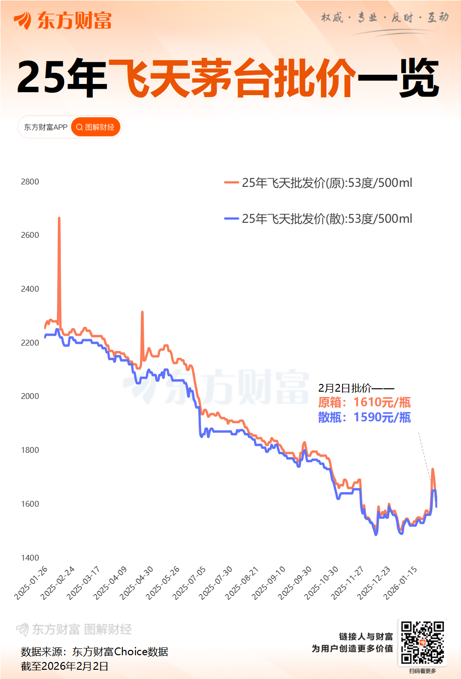 此外,随着白酒股多年的震荡走低,市场上关于白酒股已具备性价比的声音开始出现。从公募基金配置的角度认为,截至2025年末,公募基金对白酒板块的持仓比例降至3.93%,处于历史23.4%分位,超配比例接近历史低点,为本轮反弹提供了充足的资金回补空间。