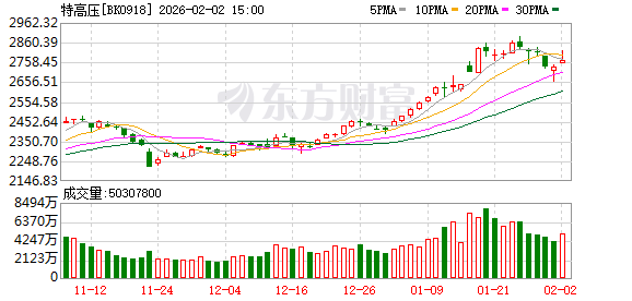 2月2日早盘,特高压概念板块持续走高,电科院20cm涨停,白云电器、杭电股份一字板,森源电气、汉缆股份、保变电气等多股涨停,安靠智电涨超17%,通光线缆、中国西电、特变电工等跟涨。