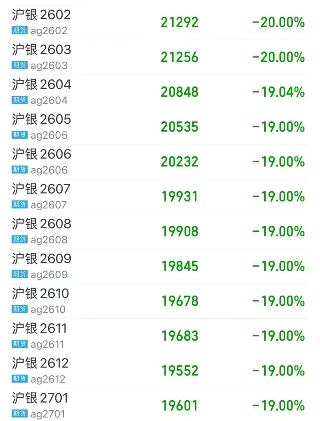 2日夜盘,内盘白银期货延续午盘的暴跌态势。沪银期货10个合约开盘后不久全部跌停。