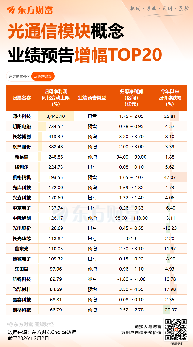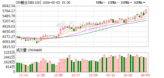 2月3日,A股早盘,创业板指一度大涨2%,CPO概念股大涨,天孚通信涨逾10%,新易盛、中际旭创涨逾3%。致尚科技开盘8分钟后,20%涨停。