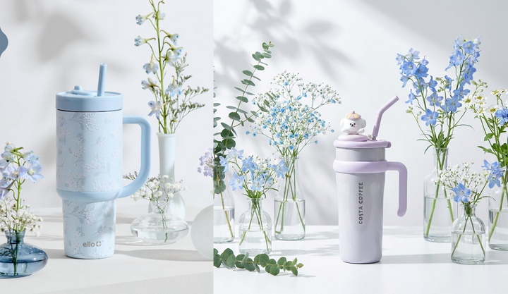 在原图的基础上,保留杯子主体,将背景换成日系小清新风格和 ins 好物分享风格,采用柔和的自然光(模拟大窗户日式亚麻纱帘侧光),构图采用经典小红书 45 度俯拍视角或平视特写。米棕色针织毛毯上,错落摆放磨砂玻璃香薰蜡烛,书籍、木质日历、编织托盘盛着白色与米黄色郁金香,旁有白色抱枕。暖色调,以米棕、奶油白为主,质感细腻,充满生活仪式感,背景柔和弱化,突出主体物品层次与细节,文字元素清晰自然,让画面丰富一些,具备生活感气息,但也不能杂乱,高光柔和,阴影干净有空气感。不要生硬得像广告片,风格:高级、精致生活、真实分享感。