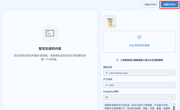 - 在网站右上角找到 “设置 APIKey” 粘贴你复制的 API 密钥。