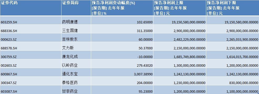 3家药企业绩预增超10倍,药明康德预计净利最高
