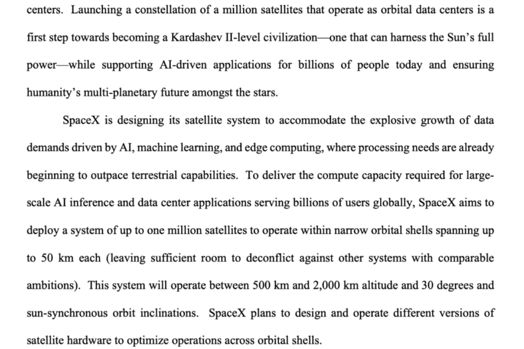 1月30日,SpaceX向美国联邦通信委员会提交了申请,将该项目描述为“一个拥有前所未有的计算能力的卫星星座,可为先进的人工智能(AI)模型及其相关应用提供支持”。