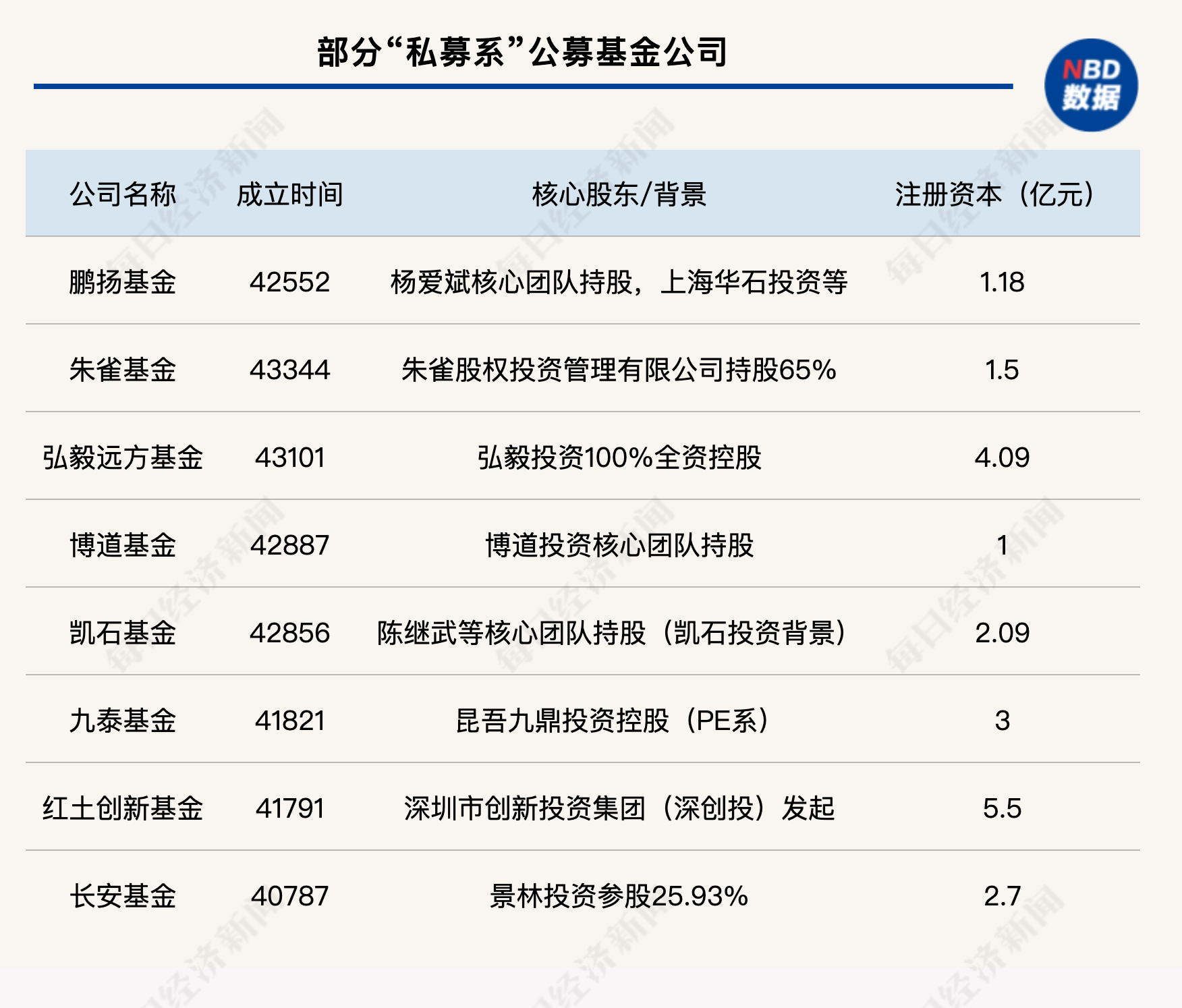 而从各自的特征来看,前述弘毅远方基金属于私募机构全资设立;也有核心团队持股的机构,如博道基金、凯石基金等;还有部分属于PE、VC发起的公募机构,例如九泰基金、红土创新基金等,适配不同私募机构的资源禀赋,部分基金公司旗下的创新产品,例如REITs基金等,均在业内处于领先地位。