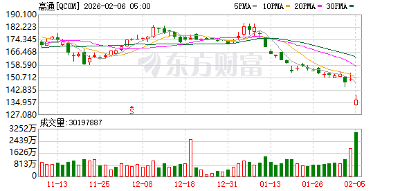 受此影响,高通股价在周三盘后交易中一度暴跌10%。当日常规交易时段,该股上涨1.16%。