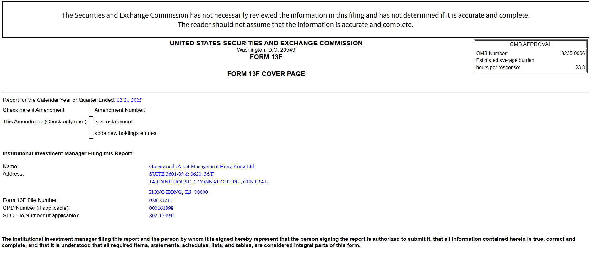 景林最新13F持仓明细: