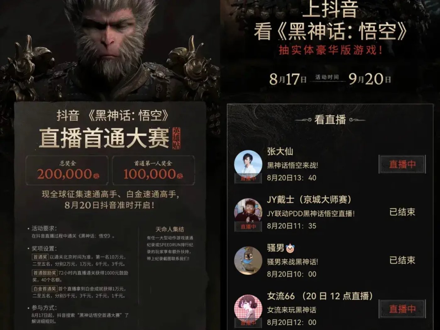 抖音发起的《黑神话:悟空》相关活动