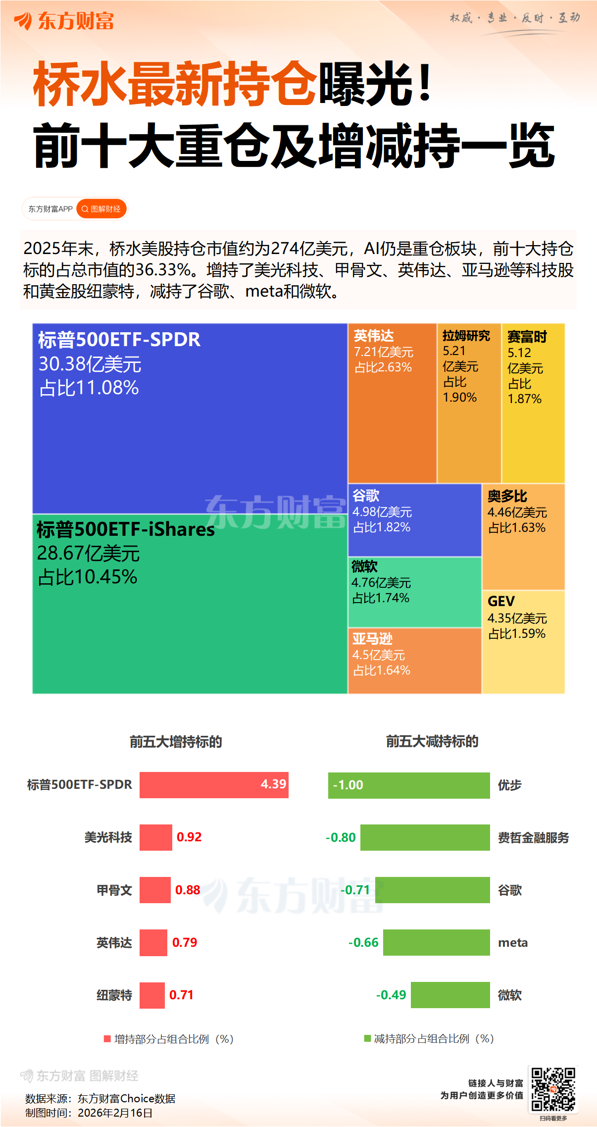 与此同时,桥水基金最新披露的美股持仓报告显示,2025年第四季度大举加码科技股与黄金概念股,包括英伟达、亚马逊与美光科技,同时增持全球大型黄金生产商纽蒙特。减持幅度最大的五只股票包括Uber、费哲金融服务、Google、Meta以及微软。