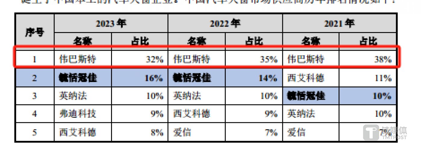 得益于天窗产品的发力,根据头豹研究院出具的《全球及中国汽车天窗行业独立市场研究》报告显示,2023年毓恬冠佳的市场份额达到了16%,仅次于伟巴斯特,位列行业第二名。
