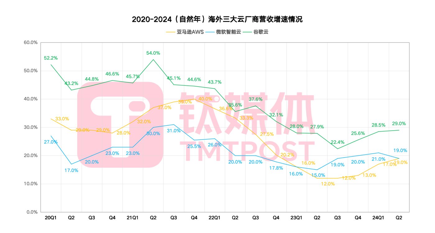单季营收方面,微软智能云为285亿美元,同比增长19%;亚马逊云AWS为263亿美元,同比增长19%;谷歌云为103亿美元,同比增长29%。
