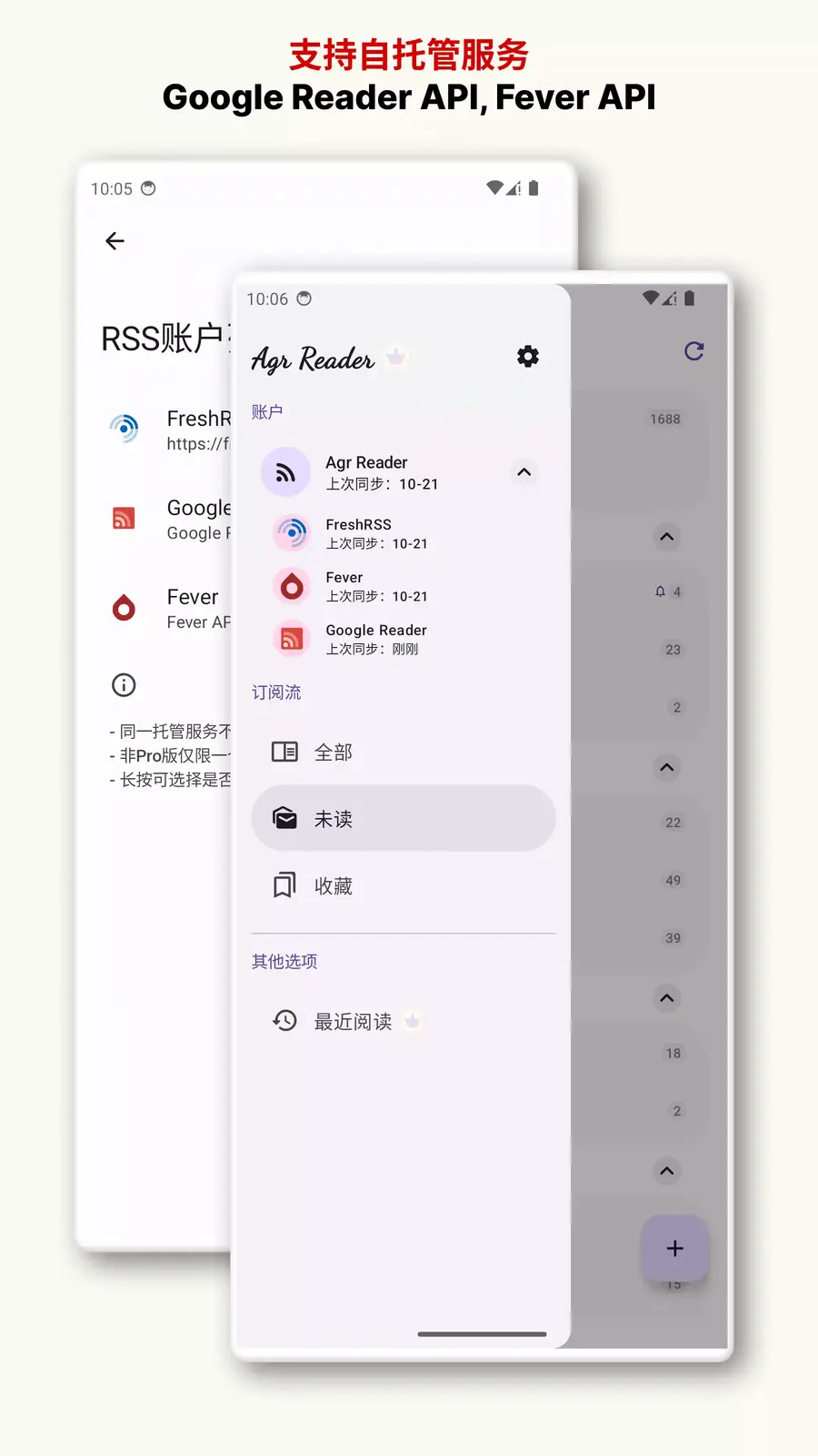 - 支持 FreshRSS 、Miniflux 、Tiny Tiny RSS 自部署服务