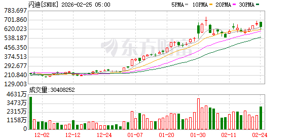 美东时间周二,近期备受追捧的存储牛股闪迪(SanDisk)股价遭遇空头突袭,股价一度大跌超8%。