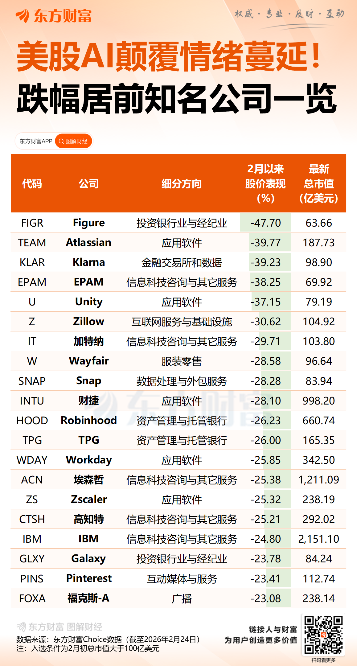 他表示,“这篇报告无疑成为了投资者关注的焦点——他们本就担忧人工智能对传统企业的二次冲击,而当我们的文章揭示最坏情况时,这种焦虑达到顶峰。”