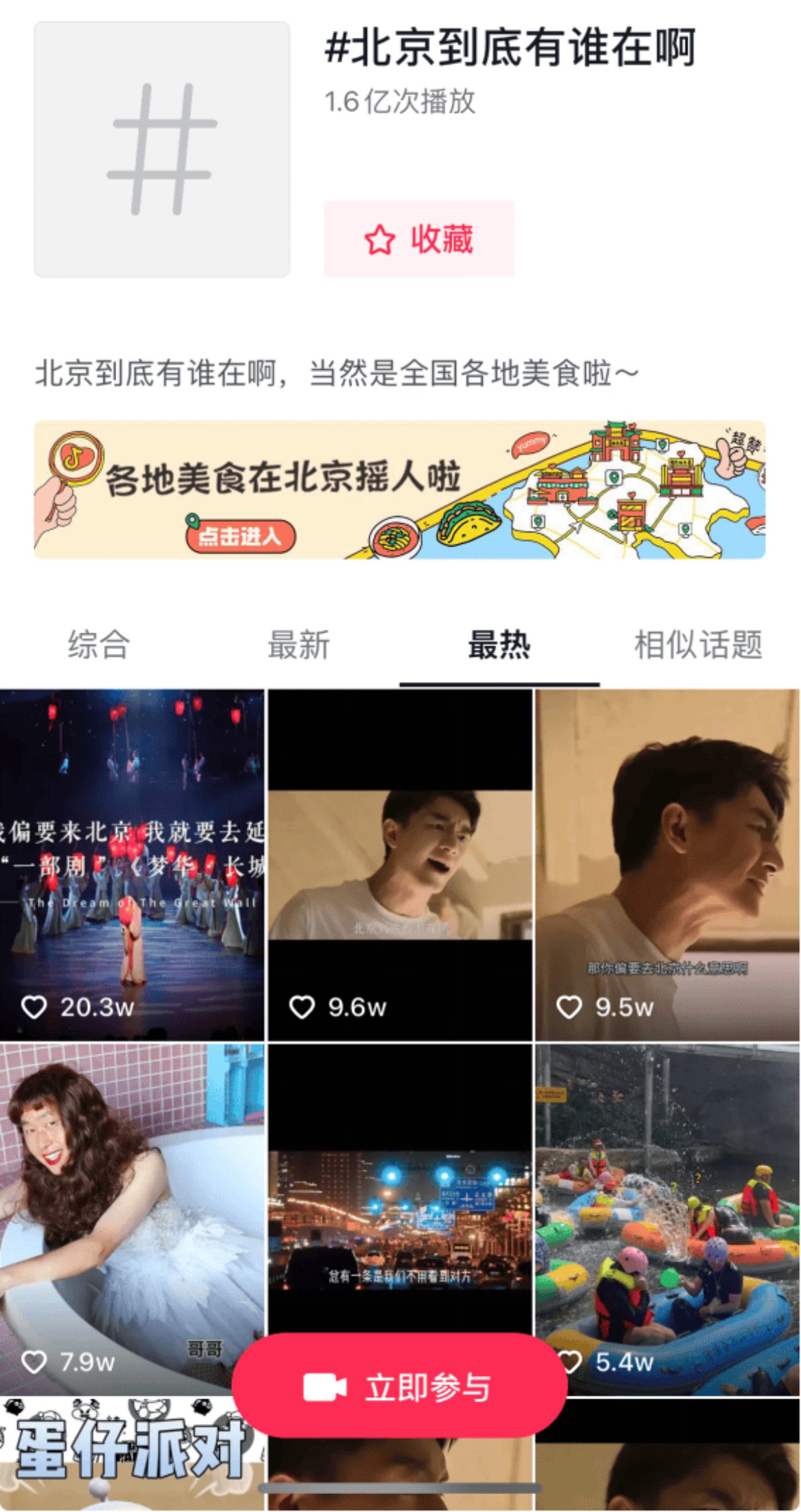 以暑期创下抖音剧集榜热度值历史最高纪录的《玫瑰的故事》为例,该剧自开播前就预埋了一系列精彩片花、主要人物关系线、金句台词等热点内容,随着剧集的播出持续跟进增加话题热度,加之用户们的积极参与和“安利”进一步助推剧集口碑发酵。其中剧里林更新的经典台词“北京到底有谁在啊”成功出圈,不仅被网友们花式剪辑笑料百出,还被各地文旅拿来作为转场视频宣传自家旅游资源。