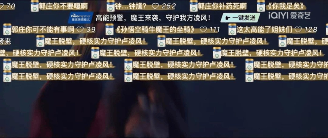 再如爱奇艺在《唐诡2》中创新性地应用了瀑布特效弹幕,凭借极强的直觉冲击和年轻化的表达“硬控”观众的注意力,结合剧情的玩梗刷屏弹幕区的同时也为品牌开辟了一条新的曝光路径。