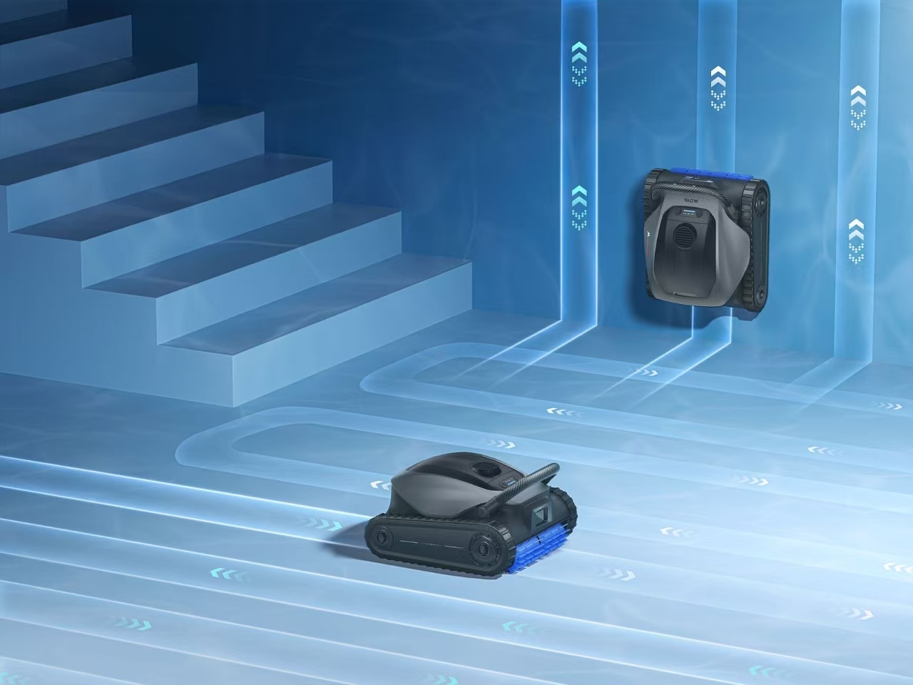 2025年9月发布的旗舰机型Rover X10,主要瞄准高端别墅和商用市场。其中搭载的FloatDrive™四旋翼悬浮动力系统,让 Rover X10 能够适配 95% 以上的异形泳池结构,无论是带有台阶的别墅泳池,还是有复杂造型的商用泳池,都能实现全面覆盖清洁,彻底解决了传统机器人 “清洁有死角” 的难题。