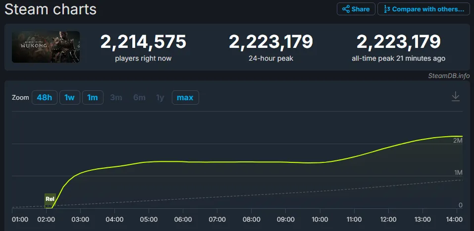 与之对应,《黑神话:悟空》昨日在 Steam 售出超 300 万份,加上 Epic、WeGame、PS5 平台的总销量超过 450 万份,总销售额超 15 亿元,超过往国产单机游戏(10万量级)预售数百倍。