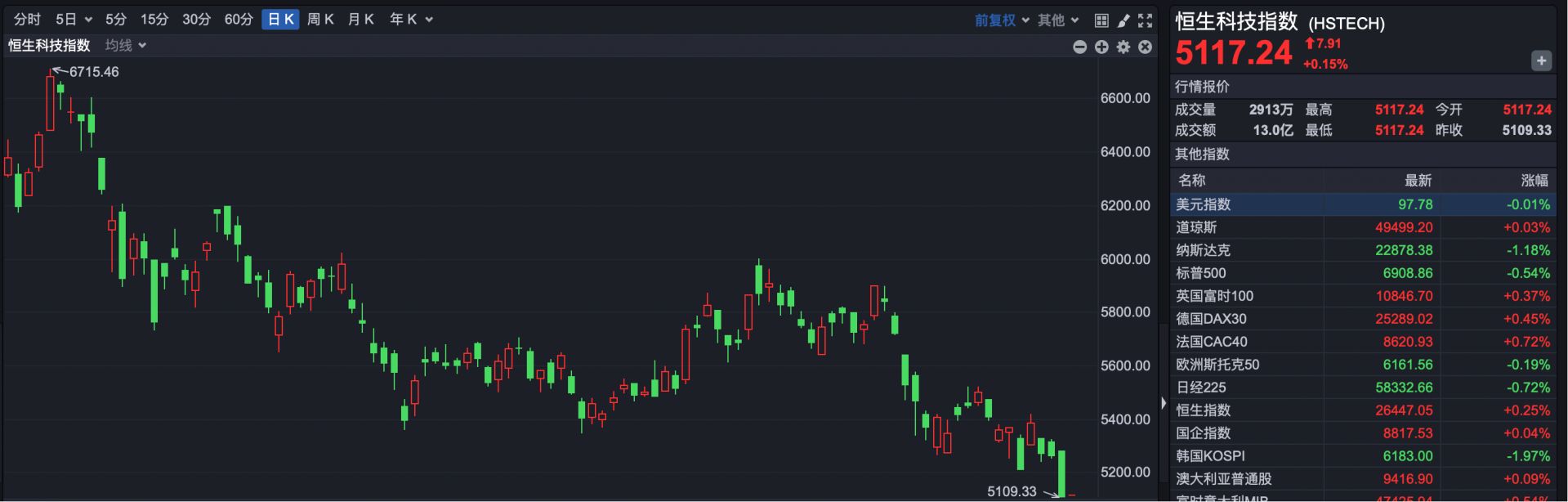 恒生科技指数开盘报5117.24点,上涨7.91点,涨幅0.15%。